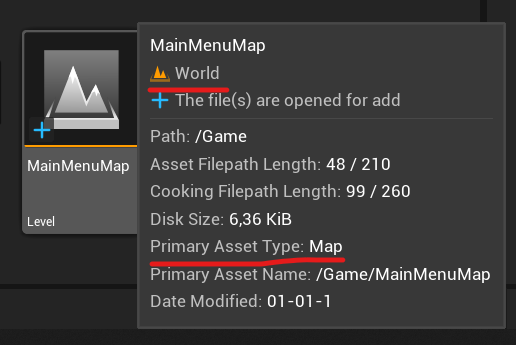 the hover box will literally show you a Primary Asset Type field (like the Map). For blueprint inherited classes you should use the Native Class instead. If you combined these two (a class in C++, and another child class in BP), the hover box will correctly show the Primary Asset Type, which has a “_C” at the end.
