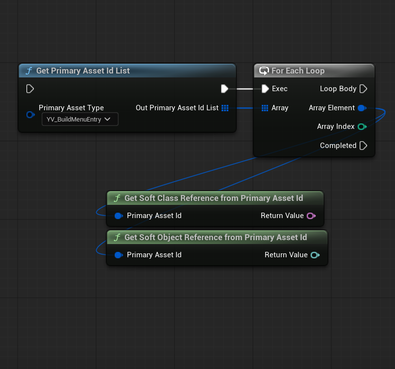 For our city builder, we have created a PrimaryDataAsset class called BuildMenuEntry, which represents an option the player can choose from the build menu (building/road/decoration). It contains all meta data required for the build menu, as well as a soft class pointer to an actor class. At game startup, we ask the Asset Manager which BuildMenuEntries it can find. We have a C++ subsystem that obscures this process and checks which buildings are unlocked to the player, but you can also use BP code to find all Primary Assets like this.